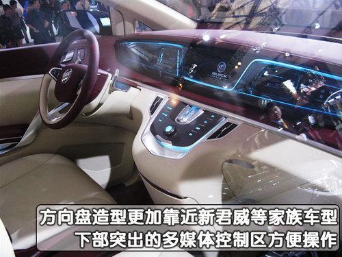 內(nèi)飾方面,別克全新GL8完全擺脫了現(xiàn)款車型老氣落伍的內(nèi)飾風(fēng)格,布局以及造型大體與概念版車型保持了一致,只是在概念車中出現(xiàn)的諸多LED顯示屏不會應(yīng)用在量產(chǎn)版車型當(dāng)中。
