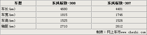 東風(fēng)標(biāo)致308車(chē)身尺寸明顯超過(guò)了標(biāo)致307車(chē)型,4680mm車(chē)長(zhǎng)、1815mm的車(chē)寬和1525mm的車(chē)寬,使得標(biāo)致308外形更加大氣,同時(shí)在加上2710mm的軸距,進(jìn)一步確保了標(biāo)致308車(chē)內(nèi)空間的寬敞,標(biāo)致307的軸距僅為2612mm。