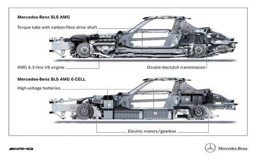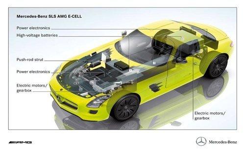SLS E-Cell將有四臺電動機(jī)驅(qū)動(前后軸上各有兩臺),因此,新車將會是一款全輪驅(qū)動車型。每臺電動機(jī)的最高轉(zhuǎn)速都可達(dá)到12000rpm,合計(jì)輸出到車輪的動力為526馬力和870N·m。SLS E-Cell的百公里加速預(yù)計(jì)可在4秒內(nèi)完成。