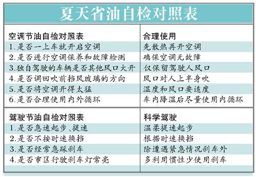 董少峰介紹,在太陽底下暴曬的車輛,上車后不宜立即開啟空調(diào)。合理的做法是開啟車窗(也可把車門打開),在不開啟空調(diào)的前提下把風(fēng)機調(diào)置較高檔位,驅(qū)趕走車內(nèi)的熱氣,等車輛適度降溫后,再開啟空調(diào)。除了恰當開啟空調(diào)外,在行駛時,風(fēng)機的風(fēng)速應(yīng)盡量調(diào)低?照{(diào)溫度設(shè)置不宜太低,一般在25℃左右較為適宜。對于非自動恒溫的手動調(diào)節(jié)的空調(diào),建議關(guān)閉無人乘坐的副駕駛風(fēng)口,讓冷氣集中在駕駛室上,這樣能夠有效地節(jié)能油耗。