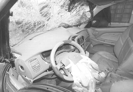 圖為事故汽車的兩個(gè)氣囊只彈出一個(gè)。