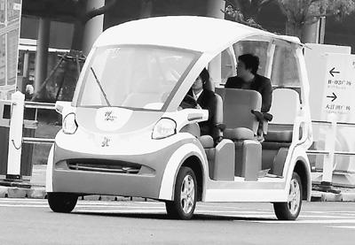 上海世博園內(nèi)運(yùn)行著太陽(yáng)能、新能源汽車、LED照明工程等低碳應(yīng)用項(xiàng)目。圖為燃料電池觀光車正在世博園區(qū)載客運(yùn)行。