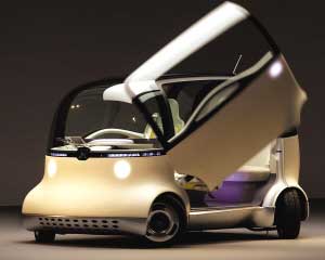 “PIXY”是僅供1人乘坐的低速移動工具。其主要特點是:相當(dāng)于人行走的移動速度,絲毫不會帶給人壓迫感的卵形車身、柔軟的外裝材料。由于裝載了可快速充電的電容器的發(fā)動機驅(qū)動,因此不會有廢氣產(chǎn)生!癝SC”是可以前后放入兩個“PIXY”的輕型汽車合體,動力采用的是燃料電池系統(tǒng)。