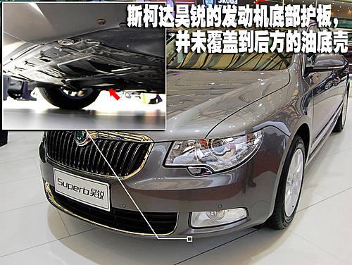 斯柯達(dá)昊銳的發(fā)動(dòng)機(jī)下方護(hù)板面積同樣比較小,發(fā)動(dòng)機(jī)油底殼位置下方?jīng)]有被護(hù)板覆蓋。但是其下護(hù)板的斜坡起設(shè)計(jì)也能夠?qū)Πl(fā)動(dòng)機(jī)油底殼起到一定的保護(hù)作用。