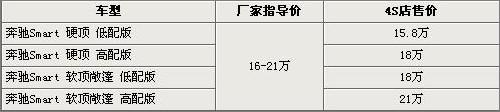 繼奔馳Smart Fortwo于08年北京車展首次與國(guó)內(nèi)消費(fèi)者見面后,奔馳Smart將于本月8日正式上市。奔馳Smart首推四款車型,分別為兩款硬頂版和兩款軟頂敞篷版車型,其中奔馳Smart硬頂?shù)团浒嫒腴T車型的售價(jià)為15.8萬(wàn)元。在動(dòng)力方面,奔馳Smart將搭載1.0L汽油發(fā)動(dòng)機(jī),并且采用后輪驅(qū)動(dòng)。