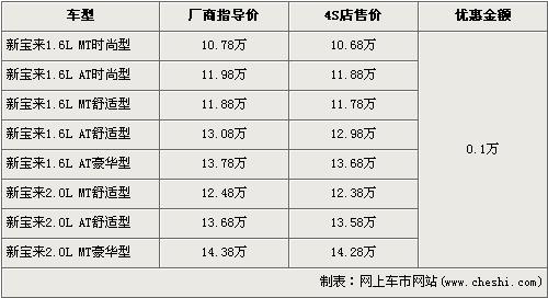 近日從一汽大眾北京地區(qū)4S店了解到,近期購買新寶來系列車型的消費(fèi)者可以得到全系1000元的現(xiàn)金優(yōu)惠。新寶來全系共分8個車型,目前全系優(yōu)惠1000元現(xiàn)金。經(jīng)優(yōu)惠后,全系入門級的1.6L手動時尚型售價降為10.68萬元,最高配的2.0L 手動豪華售價降到了14.28萬元。