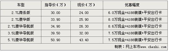 據(jù)克萊斯勒經(jīng)銷商表示,購買克萊斯勒300C除了可以得到300C的價(jià)格優(yōu)惠外,還可以得到4188元的裝潢大禮包和平安出行卡,銷售人員還表示,報(bào)價(jià)表上的車型展廳有現(xiàn)車都不需要預(yù)定。