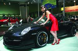 在車展1E館,豪華車競豪奢之氛圍甚濃,斏貵ran Turismo、保時捷911GT2、賓利88周年雅致RL限量版和蘭博基尼LP640 Roadster成為最耀眼的四大明星!