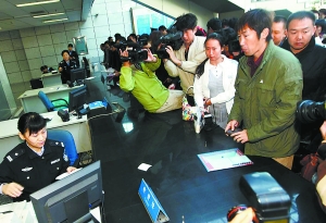 從昨天上午開始,北京車管所發(fā)現(xiàn)門前排隊的車主越來越多,于是立即啟動應急預案,首先在門前安排了排隊的區(qū)域,搬來了一臺電視機,循環(huán)播放選號時的注意事項。由于氣溫驟降,車管所免費為車主們提供熱水,同時安裝了四個臨時衛(wèi)生間。昨天下午,民警開始在業(yè)務大廳內(nèi)外進行預演,準備應付正式開始選號時可能出現(xiàn)的混亂。