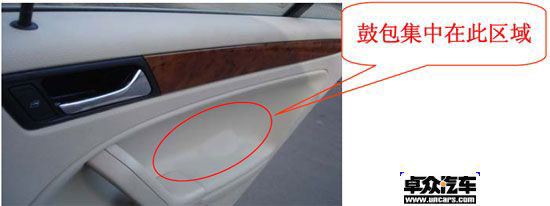 質(zhì)量問題一:新寶來左、右后車門內(nèi)護板的蒙皮中部鼓包