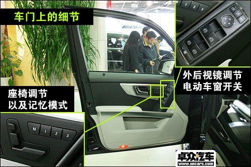 我們這次拍攝到的GLK350是GLK系列中的頂級(jí)車款,它配備有車載電話、液晶顯示屏、后排空調(diào)出風(fēng)口、多功能方向盤(pán)、全景天窗、電動(dòng)座椅調(diào)節(jié)、頭枕高度電動(dòng)調(diào)節(jié),并且?guī)в杏洃浤J降鹊仁孢m性配置,同時(shí)8安全氣囊、ESP的配備又為GLK上了一把安全鎖。
