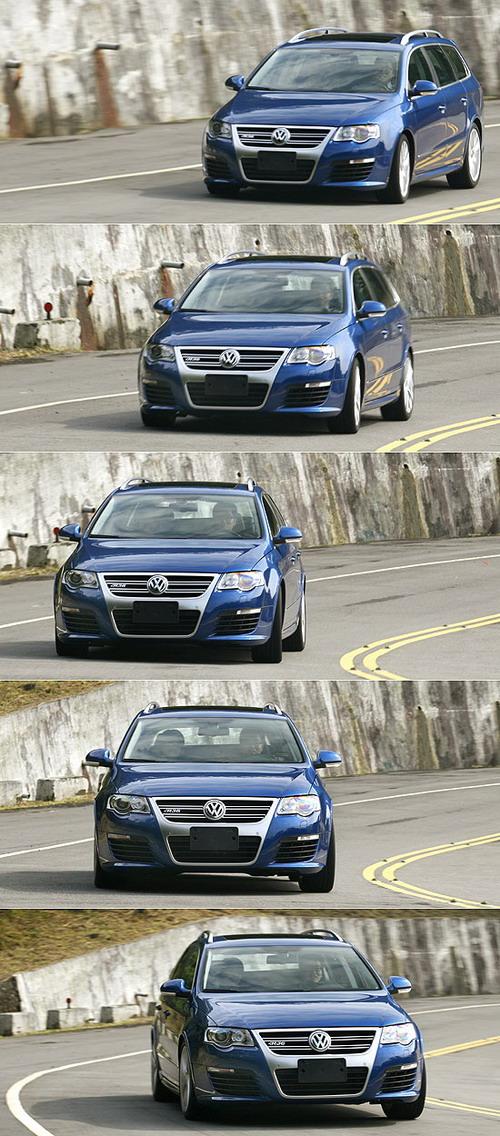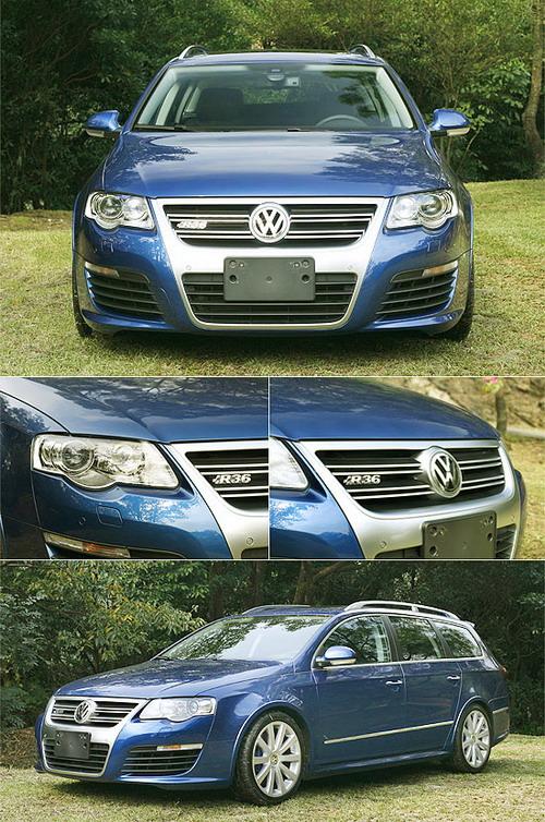 一如原廠官方照片的主打車色,此次所試的R36即采用R家族招牌的靛藍(lán)色烤漆。在穩(wěn)重而帶點(diǎn)豪華的造型基調(diào)下,大眾Individual客制化部門以空力套件的方式,為R36營(yíng)造出截然不同的運(yùn)動(dòng)風(fēng)格。招牌的V字型水箱護(hù)罩,依舊是R36車頭的焦點(diǎn)所在。仔細(xì)觀察,R36的水箱護(hù)罩采用霧面質(zhì)感處理,并采用與R32相同的雙肋樣式;而“R36”專屬銘牌亦鑲嵌于此,點(diǎn)出其獨(dú)特的性能身份。