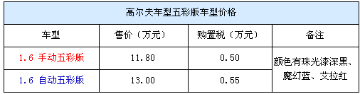 目前店內有的五彩版高爾夫有深黑、魔幻藍、艾拉紅三種顏色的現(xiàn)車,而且手動自動車型均有車銷售。而現(xiàn)在高爾夫五彩版高爾夫的售價則是手動車型11.7萬、自動版13萬元。目前購車還能得到店方贈送的全額購置稅。據了解目前店內對五彩版高爾夫車型還有大幅度的優(yōu)惠,車價直降1萬元,而加上店方贈送的購置稅使得高爾夫的性價比更高。