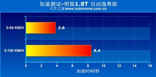 發(fā)動機就不再介紹了,和速騰冠軍版的動力輸出完全一樣,讓我們直接來看測試成績。沒有了大號輪轂和寬胎的拖累,明銳的簧下質(zhì)量明顯減輕,跑起來輕快感不言而喻,但在全油門加速產(chǎn)生的發(fā)動機強大低扭的摧殘下,可憐的205輪胎根本抓不住地面,起步和加速中途都有打滑現(xiàn)象,而ASR牽引力控制系統(tǒng)此刻就會介入干預,這也影響了明銳的成績,所以我們反復測試什么轉(zhuǎn)速起步更加合適,最終成績?yōu)?.4s,是今天推薦的車型中最好成績,實力果然不俗。