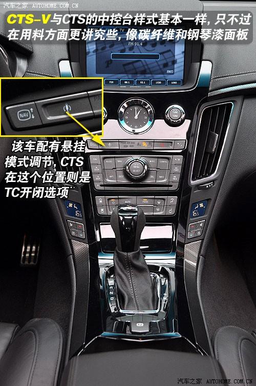 在CTS-V車內(nèi),我看到了不少運(yùn)動(dòng)型或性能車上所具有或沒(méi)有的特點(diǎn),說(shuō)起來(lái)有些繞口,首先談?wù)劰残。一般情況下,運(yùn)動(dòng)型車內(nèi)都會(huì)用深色為基調(diào)的內(nèi)飾并搭配碳纖維面板,有些車上還會(huì)用白色縫合線與深色高等皮質(zhì)搭配,這樣一來(lái),不僅樣式好看,它所透出的動(dòng)感也是無(wú)法掩蓋的。