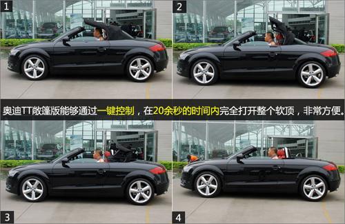 我們實拍的這臺奧迪TT敞篷采用渦輪增壓器和FSI燃油直噴技術(shù)的2升4缸發(fā)動機。它可輸出147千瓦的功率,產(chǎn)生280牛米的扭矩,并保持轉(zhuǎn)速范圍在1800-5000轉(zhuǎn)/分鐘之間。值得一提的是,這款高效而節(jié)能的發(fā)動機入選2009年Wards Auto的“世界十佳發(fā)動機”排行榜,實力毋庸置疑。