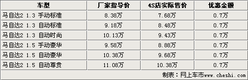 據(jù)長安馬自達銷售人員表示,購買馬自達2車型除了可以得到7000元現(xiàn)金優(yōu)惠外,還可以得到廠家贈送價值千元的原廠汽車裝飾。目前馬自達2兩廂車型的貨源比較緊張,部分車型需要提前預訂,訂貨周期一般在7-15個工作日左右。由于小排量車型的購置稅下調,整體購車價將會下調3-4千元左右,在加上目前的現(xiàn)金優(yōu)惠,消費者目前購車還是比較劃算的。