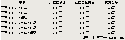 據(jù)長(zhǎng)安鈴木4S店銷(xiāo)售人員介紹,雨燕目前現(xiàn)車(chē)比較充足, 1.5L雨燕車(chē)型在北京最高可給出6000元的優(yōu)惠,相比前一陣優(yōu)惠金額增加500元。另外,倍受關(guān)注的雙色版雨燕目前的價(jià)格仍然沒(méi)有變化,并且均為訂單銷(xiāo)售,各店沒(méi)有現(xiàn)車(chē)。若想購(gòu)買(mǎi)需要提前預(yù)訂,訂金2000元,四周后提車(chē)。