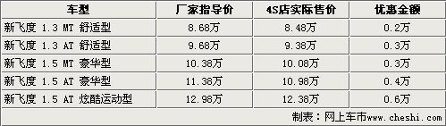 據(jù)廣州本田北京地區(qū)4S店銷(xiāo)售人員介紹,新飛度全系的優(yōu)惠金額與前一陣相比基本沒(méi)變,不過(guò)新飛度 1.5L炫酷運(yùn)動(dòng)版的優(yōu)惠金額上漲到了6000元。新飛度在售車(chē)型分為1.3L及1.5L共5個(gè)車(chē)型在售,1.3L手動(dòng)舒適版的優(yōu)惠金額仍為2000元,現(xiàn)售價(jià)為8.48萬(wàn)元。1.3L自動(dòng)舒適版的優(yōu)惠金額為3000元,現(xiàn)售價(jià)為9.38萬(wàn)元。1.5L豪華版的手動(dòng)和自動(dòng)車(chē)型經(jīng)4000元優(yōu)惠后,現(xiàn)售價(jià)分別為10.08萬(wàn)元和10.98萬(wàn)元,1.5L炫酷運(yùn)動(dòng)版的優(yōu)惠從5000元上漲到了6000元,現(xiàn)售價(jià)為12.38萬(wàn)元。
