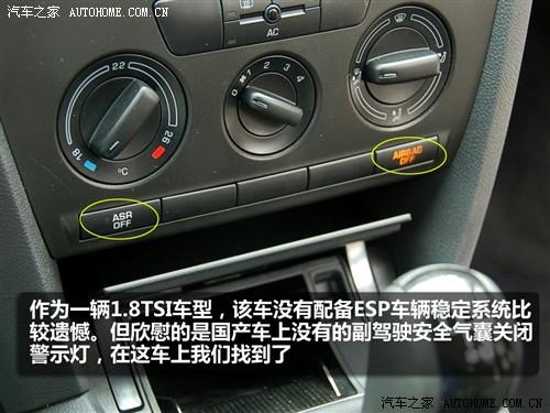 作為1.8TSI手動擋車型,我們在中控臺上并沒有發(fā)現(xiàn)ESP車輛電子穩(wěn)定系統(tǒng)的按鍵,不過我們找到了副駕駛安全氣囊關閉指示燈。經(jīng)真實,該車的確沒有配備ESP,比較遺憾。而國產(chǎn)明銳 1.8T 手動奪金版上則配有ESP,可見國產(chǎn)車的配置也還算厚道。