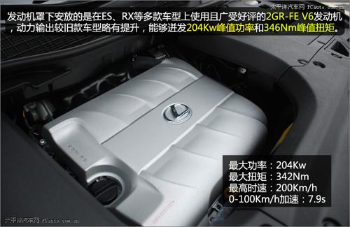 在新RX350上沿用了廣受好評的2GR-FE V6發(fā)動(dòng)機(jī)。這款發(fā)動(dòng)機(jī)經(jīng)過重新調(diào)校后,動(dòng)力輸出較舊款的RX350略有提升,能夠迸發(fā)204Kw峰值功率和346Nm峰值扭矩。最高時(shí)速可達(dá)200Km/h,0-100Km/h加速也僅需7.9s。先期引入國內(nèi)的RX系列車型并沒有使用混合動(dòng)力系統(tǒng),不過想必一向?qū)Νh(huán)保十分重視的雷克薩斯品牌會在不久的將來將搭載有混合動(dòng)力系統(tǒng)的RX車型引入到國內(nèi)市場,豐富RX的產(chǎn)品線。