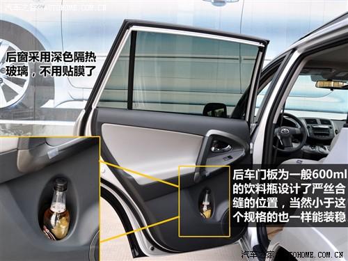 說RAV4的儲(chǔ)物功能,要從頭說起。遵循先左后右的習(xí)慣,我們就從左前車門說起。前車門有儲(chǔ)物格是很平常的,不過除此以外,RAV4為我們經(jīng)常會(huì)喝的600ml規(guī)格飲料設(shè)計(jì)了很妥貼的位置。后車門沒有其他儲(chǔ)物功能,但只有這一個(gè)放飲料瓶的位置就足夠貼心了,因?yàn)榇_實(shí)不是擺樣子的,非常實(shí)用。