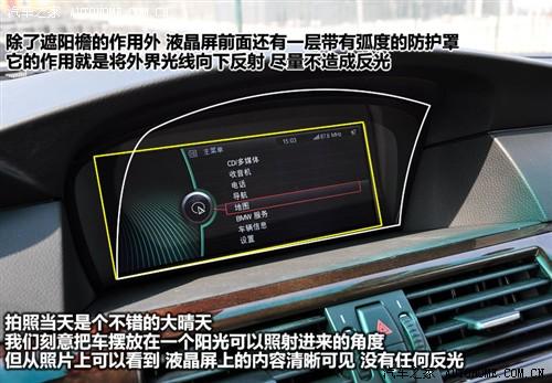 在一些配有中控臺(tái)液晶屏的車(chē)上,經(jīng)常會(huì)遇到屏幕反光而使我們看不清屏幕內(nèi)容的情況,這在陽(yáng)光明媚的天氣或清晨旁晚陽(yáng)光斜射的時(shí)候更容易發(fā)生,但寶馬5系iDrive系統(tǒng)的液晶屏基本不會(huì)遇到這樣的麻煩。