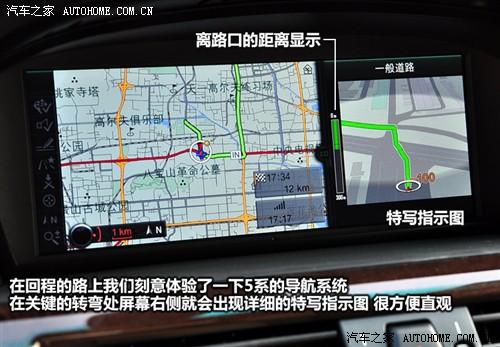 導(dǎo)航系統(tǒng)也是我們比較關(guān)心的內(nèi)容,在回程的路上我們將公司設(shè)置為目的地全程進(jìn)行語(yǔ)音導(dǎo)航。在左側(cè)主屏幕的右下方我們可以看到系統(tǒng)計(jì)算出的到達(dá)目的地的時(shí)間和距離,而每到需要轉(zhuǎn)彎或進(jìn)出主輔路時(shí),右側(cè)的小屏幕都會(huì)有具體的路線(xiàn)指示,同時(shí)旁邊有到達(dá)路口的精確距離顯示,視覺(jué)指引非常清晰。但是語(yǔ)音提示方面iDrive系統(tǒng)做的就不是很完美。雖然路上都是語(yǔ)音提示,比如“前方500米左轉(zhuǎn)”之類(lèi)的,但真正到達(dá)路口時(shí)卻沒(méi)有任何語(yǔ)音提示,如果不熟悉路線(xiàn)只能通過(guò)看屏幕才能知道的確是在這里轉(zhuǎn)彎,但一般路口都是車(chē)多人雜的地方,在這里分心看屏幕的話(huà)可能會(huì)有安全隱患,這方面iDrive系統(tǒng)還有考慮的不太周全。