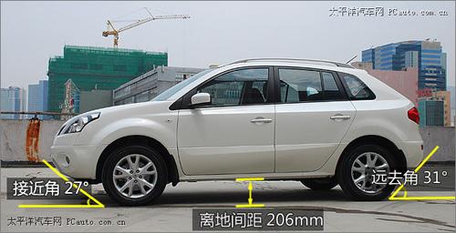 雖說雷諾Koleos不以SUV自居而是強(qiáng)調(diào)Crossover的跨界車型,但是起外形設(shè)計(jì)則處處體現(xiàn)SUV的特質(zhì),206mm的最小離地間距保證了其有足夠的通過性能,而27°的接近角和31°的遠(yuǎn)去角都完全是按照SUV的級別來設(shè)計(jì)的,應(yīng)對各種顛簸路面或是崎嶇山路都能從容通過。