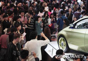 4月25日,2009上海國際車展開幕后迎來首個雙休日,當日接待參觀者突破13.6萬人次,展車被“淹沒”在“人海”中。新華社發(fā)(吳長青 攝)