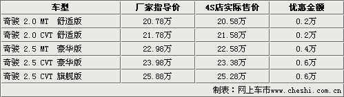 東風日產(chǎn)奇駿自去年11月上市以來一直備受消費者關(guān)注。國產(chǎn)后的奇駿填補了東風日產(chǎn)在SUV領(lǐng)域的空白,為那些對越野性有更多需求的城市SUV消費者提供了更多的選擇機會。根據(jù)網(wǎng)上車市價格監(jiān)測系統(tǒng)顯示,奇駿現(xiàn)車供應(yīng)仍然比較緊張,但較前一陣有所緩解,全系車型均出現(xiàn)了價格浮動。2.5頂配和豪華自動檔車型的優(yōu)惠幅度均已達到了6000元。