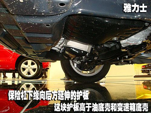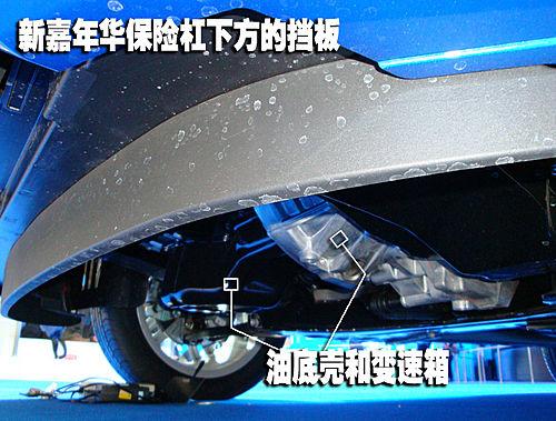 長安福特新建年華和廣豐雅力士相同,沒有設(shè)計發(fā)動機(jī)和變速箱下方的護(hù)板,不過前保險杠下緣突出的擋板同樣起到了發(fā)動機(jī)油底殼和變速箱底殼的第一道防線的作用。