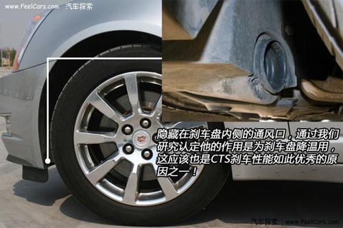 做完剎車測試,我們又對新CTS的輪胎,剎車盤片進(jìn)行了仔細(xì)的觀察研究,發(fā)現(xiàn)在輪胎內(nèi)側(cè)隱藏了一個出風(fēng)口,正對著剎車盤。通過分析我們認(rèn)定他的作用是對剎車盤降溫,這樣能夠讓剎車盤始終保持最佳狀態(tài)。看來新CTS能夠取得如此好的成績通用汽車在設(shè)計上確實下了一番苦心的!