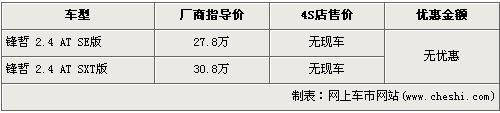 據(jù)經(jīng)銷商銷售人員介紹,道奇鋒哲車型已經(jīng)停產(chǎn),并且各道奇經(jīng)銷店已經(jīng)沒有鋒哲現(xiàn)車,近期也不會(huì)再進(jìn)口此車。欲購買此車的消費(fèi)者需等待一段時(shí)間,如果復(fù)產(chǎn)國內(nèi)也只會(huì)引進(jìn)30.8萬元的高配車型。