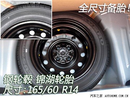 比亞迪F0的四款車型都裝備了尺寸為165/60 R14的錦湖輪胎,其中高配的尊貴型和旗艦型采用的是鋁合金輪轂。我們實(shí)拍的這款車配備的是鋼輪轂,顯然是低配車型。四款車的備胎都是尺寸165/60 R14的錦湖輪胎,鋼輪轂。因此在這輛低配車上是全尺寸備胎。