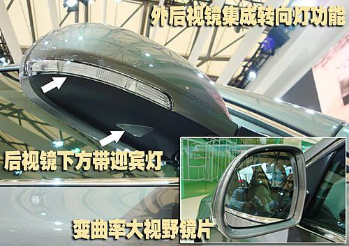 位于兩側(cè)外后視鏡的設(shè)計(jì)融合了時(shí)下高端車(chē)型的諸多元素,例如帶有側(cè)面轉(zhuǎn)向燈功能以及可以在夜晚照亮車(chē)門(mén)下方的迎賓燈功能,變曲率的大視野后視鏡在車(chē)內(nèi)的觀察效果非常好。