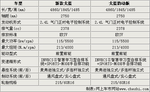 三菱全新戈藍和韻動版的整車尺寸為4860/1845/1485mm,軸距達到了2750mm,與雅閣、凱美瑞達到同一水平。新款戈藍和韻動版搭載2.4L發(fā)動機,最大功率達到115kw/rpm,最大扭矩為213N.m/4000rpm.,匹配INVECSⅡ智慧學(xué)習(xí)型手自一體變速箱,并配備有換擋撥片功能。戈藍采用多連桿式后懸掛系統(tǒng),并采用前通風(fēng)盤式,后實心盤式制動系統(tǒng),使這款車更具操控性和安全性。