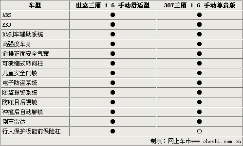 東風雪鐵龍世嘉三廂和標致307都屬于同一平臺的產(chǎn)物,所以在車身結構上完全一樣。作為同一級別的兩款車型在安全配置方面基本相同。ABS、EBD、安全氣囊、安全車身都被列為了它們的標準配置。值得一提的是它們還裝備了沖撞自動解鎖系統(tǒng),大大確保了在發(fā)生事故時乘員的安全。但仔細看下來,世嘉三廂配備了碰撞緩沖保險杠,該項配置確保了在發(fā)生事故時對行人傷害的程度降到最低。
