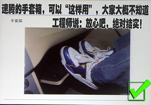 一汽大眾產品部工程師在演示這張照片的時候令在場媒體記者很吃驚,扶手箱打開后竟然可以當作副駕駛乘員的歇腳板。而且一汽大眾產品部工程師還告訴我們,“盡管放心的去用吧,它足夠結實!”。