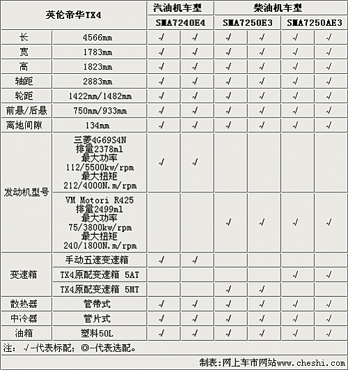 英倫TX4的長寬高分別是4566/1783/1823毫米,雖然是一款A級車的外形尺寸,但這款車的軸距為2883毫米,達到了一款B級車的水平。TX4分為汽油版和柴油版,汽油版搭載三菱4G69系列發(fā)動機,而柴油版搭載大眾的R425柴油發(fā)動機。從動力數(shù)據(jù)方面來看,柴油版擁有低速高扭的特點,而汽油版的最大功率達到112千瓦,而且具有很好的經(jīng)濟性。TX4汽油版匹配手動五速變速箱,而柴油版卻可以匹配原裝的五速自動變速箱。
