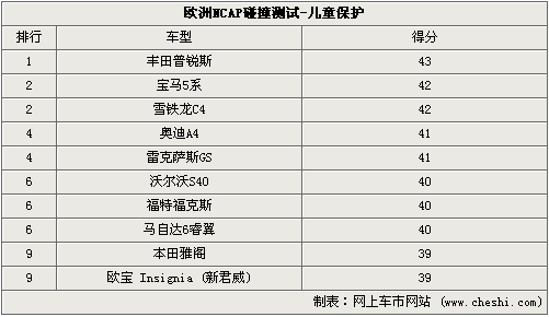 2、寶馬5 兒童保護得分:42