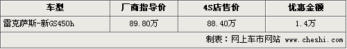 在雷克薩斯三款混合動力車型中,GS450h是的售價是最低的,消費者除了可以享受到1.4萬元的現(xiàn)金優(yōu)惠外,還可以得到商家贈送的原廠汽車裝飾。