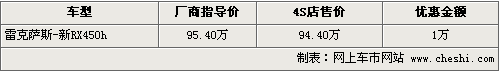 據(jù)雷克薩斯4S店銷(xiāo)售人員表示,剛剛上市的RX450h的貨源相對(duì)比較緊張,所以?xún)?yōu)惠幅度也是最少的,只有1萬(wàn)元。個(gè)別款色需要消費(fèi)者提前預(yù)訂才行。