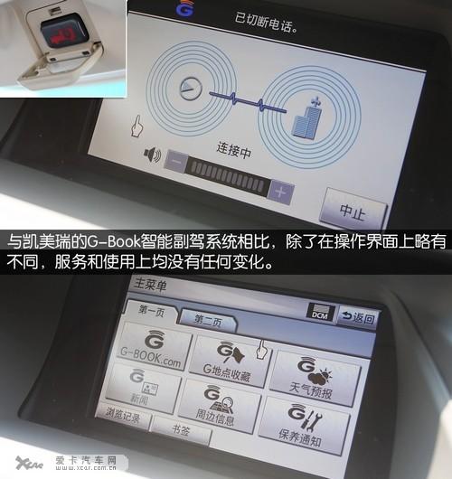 那么Remote Touch信息操作系統(tǒng)能夠控制哪些功能呢?除了常規(guī)的空調(diào)、音響、電話和導(dǎo)航等功能,之前在凱美瑞上亮相的G-Book智能副駕系統(tǒng)也被整合其中,除了在操作界面上略有不同,服務(wù)和使用上均沒(méi)有任何變化。