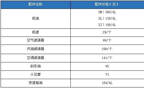 雅閣的機(jī)油價格比較特殊,分為三種,分別為SJ級,SL級和SM級別,價格也從108元/4L升級到368/4L?諝鉃V清器每2萬公里更換一次,汽油濾清器每4萬公里更換一次。另外4萬公里時還需要進(jìn)行一次比較大的保養(yǎng),更換全車油,清洗節(jié)氣門等等,費(fèi)用為2200元。