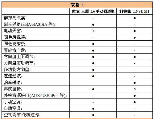 兩款車的最低配車型分別為世嘉的時尚型和科魯茲的SL版本,但三廂世嘉時尚型配置比科魯茲高很多,甚至比科魯茲SE也高勝一籌。安全配置方面兩款低配車型都只有雙安全氣囊,但世嘉裝備的剎車輔助系統(tǒng)是科魯茲所不具備的。其它便利性或舒適性配置,二者的差距更加明顯。其中比較重要的配置區(qū)別在于世嘉時尚型裝備了可前后調(diào)節(jié)的多功能方向盤,上面集成了定速巡航系統(tǒng),此外時尚型還配備了泊車輔助,這使駕駛者在停車時操作會更加方便。