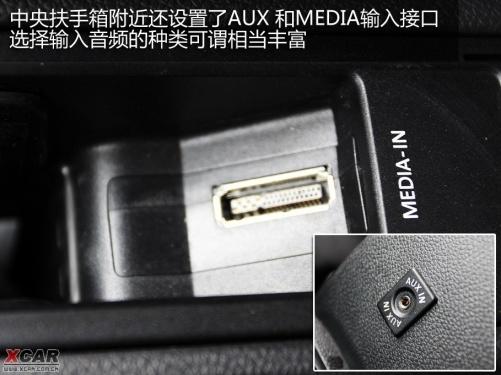 中控臺上最顯眼的就是MFD3多媒體影音系統了,大尺寸屏幕在顯示信息與清晰度上都堪稱佳作,按鍵質感也很好。除了常用的CD和內置硬盤以外,還可以讀取SD卡中的影音文件。另外,在可前后移動的中央扶手箱附近還設置了AUX 和MEDIA輸入接口,選擇輸入音頻的種類可謂相當豐富。