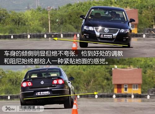進(jìn)入樁桶,指向精準(zhǔn)的方向盤對路面反饋仍然細(xì)膩清晰,懸掛的收縮很快,韌性十足。雖然車頭依然有一點轉(zhuǎn)向不足,但是良好的人車溝通和后輪跟隨性,使新邁騰無限接近操控的極限。