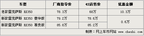 筆者從雷克薩斯經銷商處了解,目前雷克薩斯有數量不多的老款車型甩賣,目前最低僅售68萬元,只有銀色款有現車供應,優(yōu)惠幅度也達到了10.3萬元。同時銷售的新款車型售價分別為79.2萬和85.8萬元,目前優(yōu)惠幅度非常小,僅有0.6萬元。新款車型也有少量現車供應,具體詳情消費者可以到店咨詢。