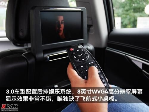 同樣只能在3.0車型上找到的配置還有后排娛樂系統和三區(qū)空調,其兩個后排液晶屏固定在前排椅背上,不用的時候可以完全折疊起來,不影響美觀。由于采用了8英寸的WVGA高分辨率屏幕,其顯示效果非常不錯。如果搭配AV輸入和隱藏的230V電源使用,在后排玩游戲機絕對不失為商務精英們忙里偷閑的絕佳休閑方式。
